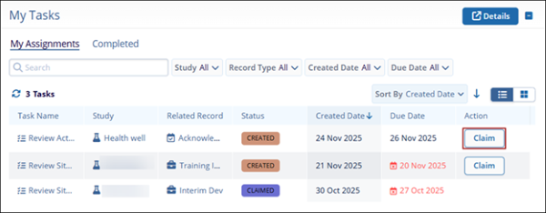 - As the user added as the recipient, access the My Tasks dashlet and click