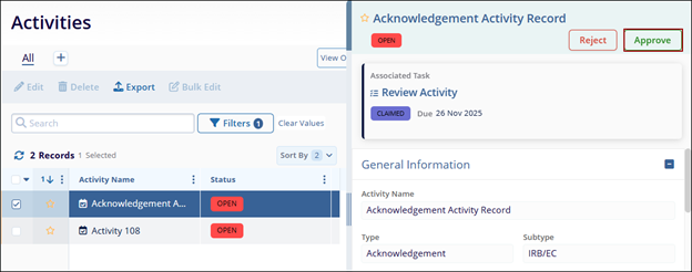 - On the Workflow Task Review Activity pop-up, click on Open Activity.