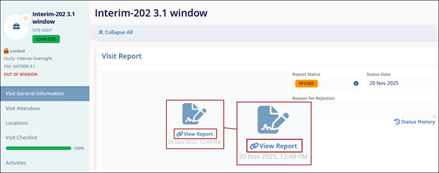 - Navigate to the Visit Report section, click the ‘View Report’ link to open