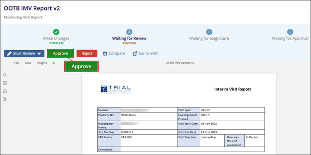 Follow steps 7 to 17 from the Signing the Document and Approval Workflow to sign and approve the report.