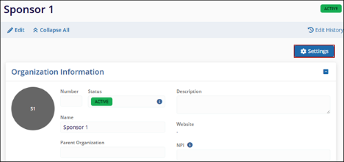- On the Sponsor Details screen, click on the Setting button in the top-right of the