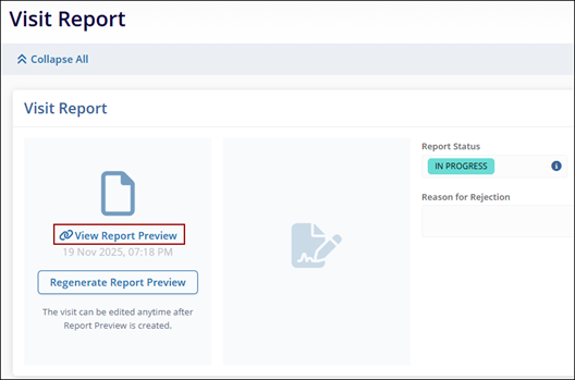 - Click on the Visit Report link and update the Report Status to In Progress.