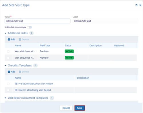 - On the Edit Site Visit Type window, make the required changes and click Save.