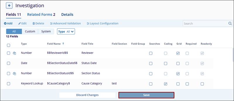 - Include In: Select Coding, Grid, and Searches from the dropdown.