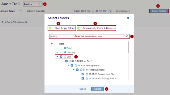- Select Folders: The Select Folders field allows users to specify certain folders and