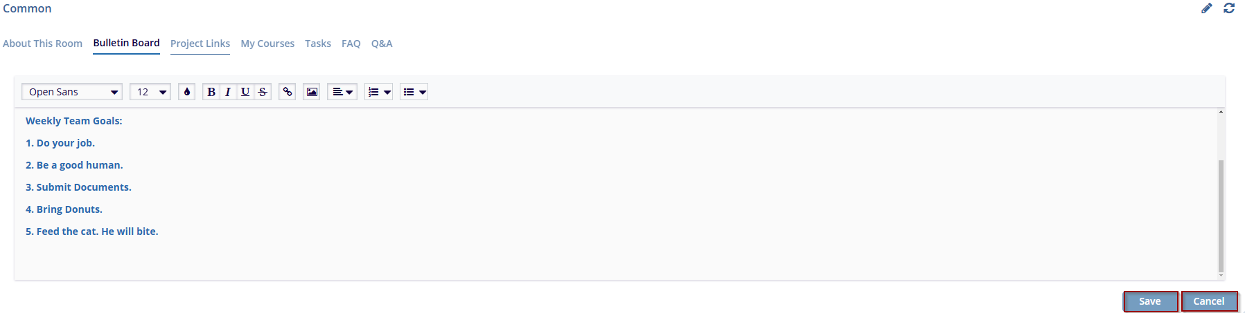 - Navigate to the Common dashboard, and click on the Bulletin Board tab.