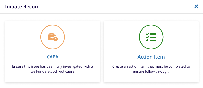 - After clicking on the button, it will open the window to create CAPA and Action Item.