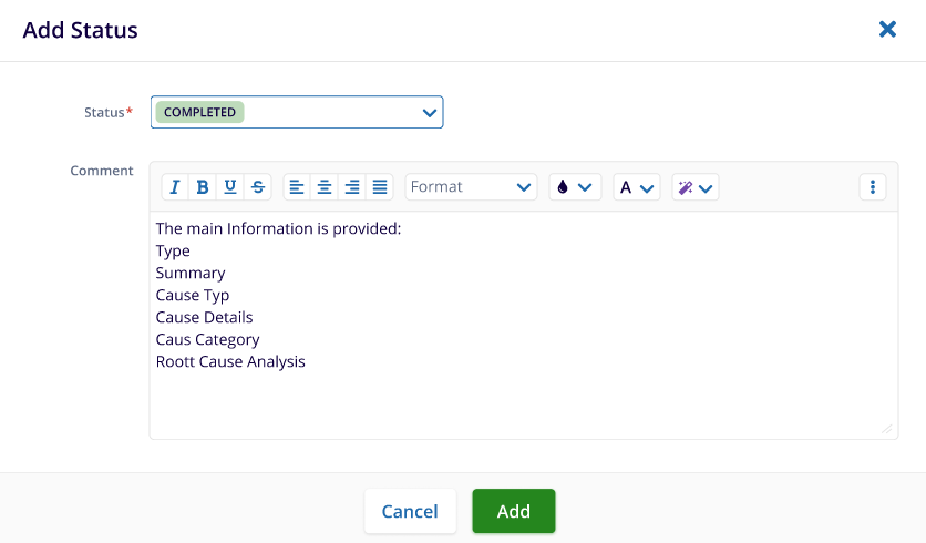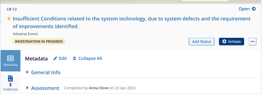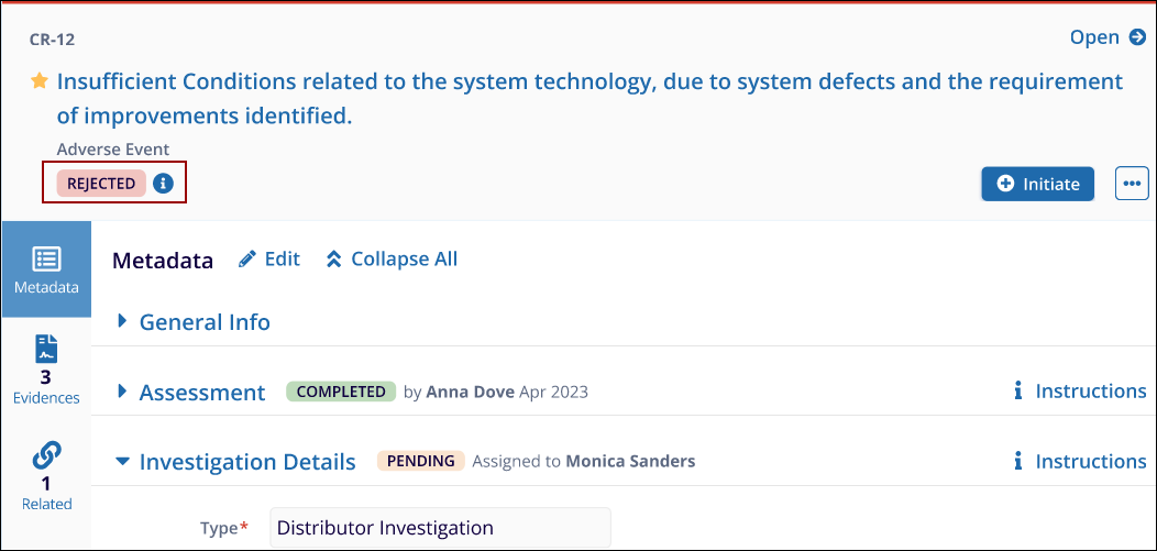 Incidents can be canceled at any stage, depending on the configuration of the workflow. Once an authority cancels a CAPA, the record is removed from the workflow.