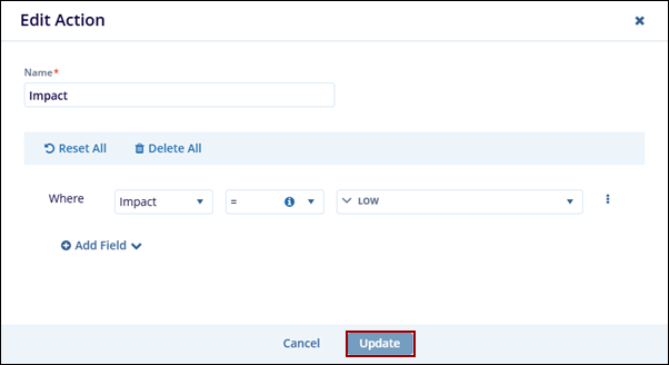 - On the ‘Edit Action’ window, make the required changes and click on the ‘Update’ button.