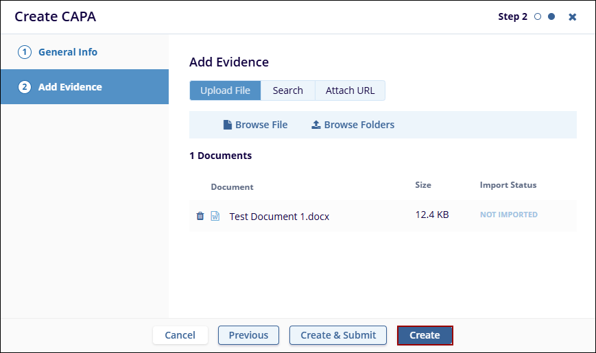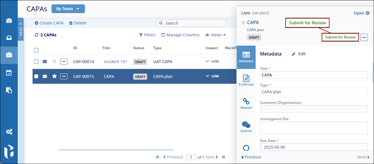 - To create a CAPA record and submit for review, follow ‘STEPS 3 to 10’ from the Create CAPA section.