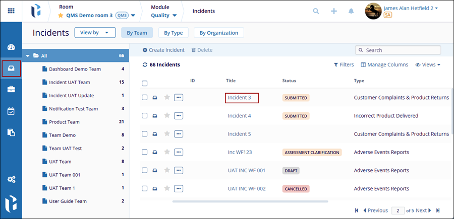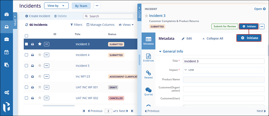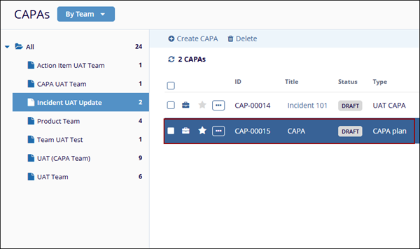 In addition to creating a CAPA record through the CAPA's modal, originator users can create a CAPA through an incident.
