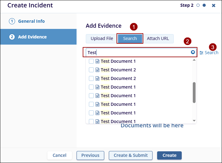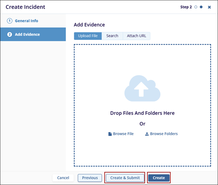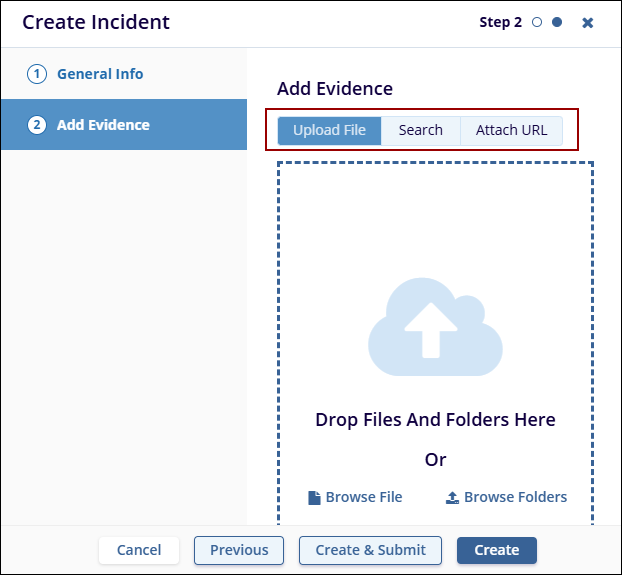- In the Add Evidence screen, users have three options to Add Evidence.