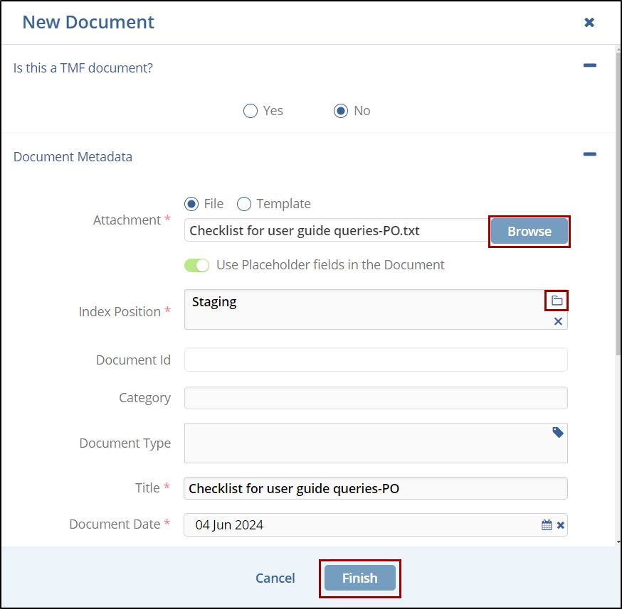- Select the appropriate radio button for the question - 'Is this a TMF