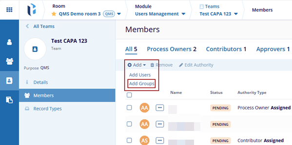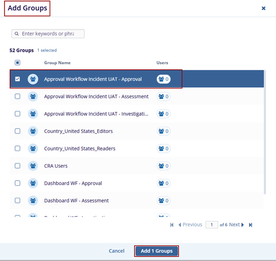 Note: Ensure that the selected Users/Groups should have the assigned Regulatory Authorities types.