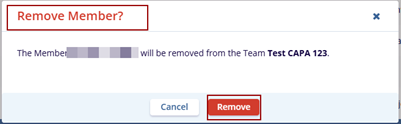 - The Remove Member? Pop-up window is displayed with the Cancel and Remove buttons.