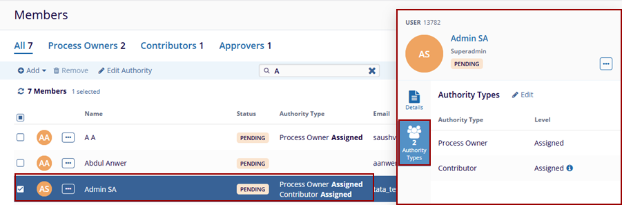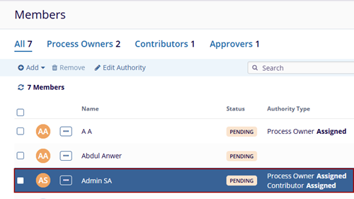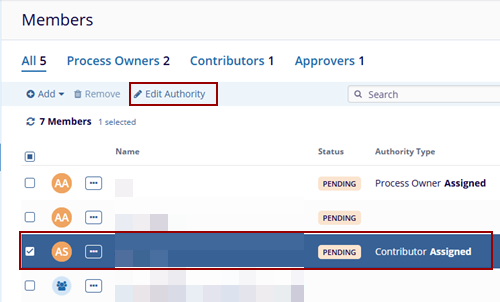 - Select the checkboxes next to the Users/Groups for which the authorities need to be edit from the Members page grid view.