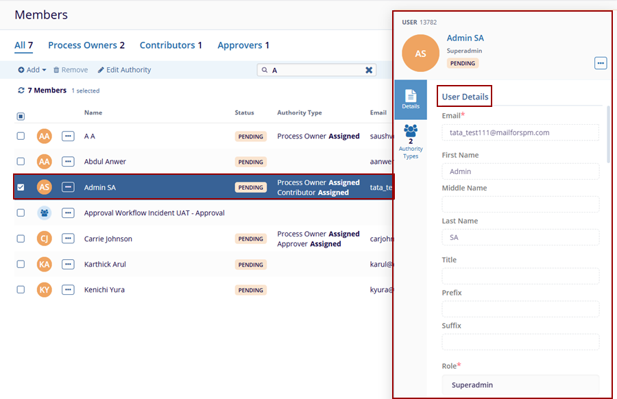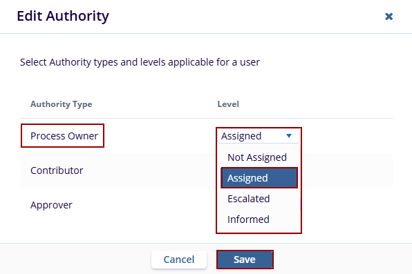 Note: Ensure that the selected Users/Groups are not assigned by any of the Regulatory Authorities types.