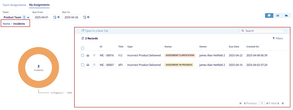 Users with Editor access levels the My Assignments tab displays only those records that are assigned to a particular user.