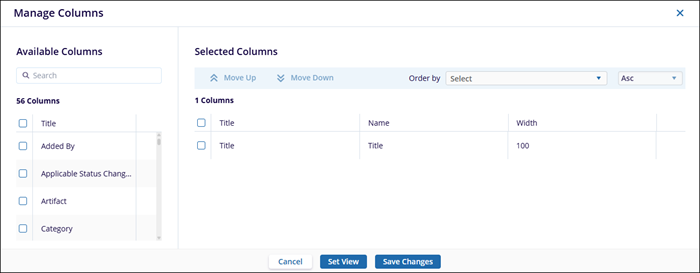 - Once, the columns are selected click Set View or Save Changes.