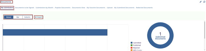 user can view the Submitted Documents Chart through the Donut, Bar, and Column view by