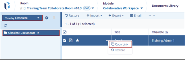 - To view the obsolete documents, set the view to display only the obsolete documents.