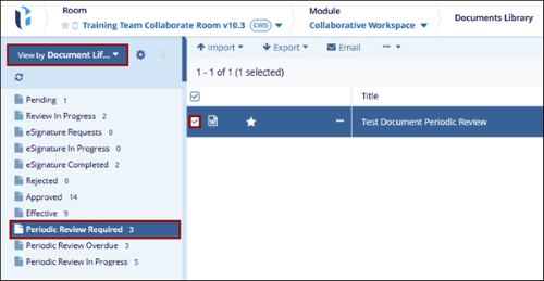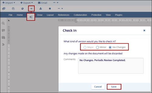 - If a major or minor version is checked in during a periodic review, the document can be located in the Periodic Review In Progress folder and routed through the approval workflow.