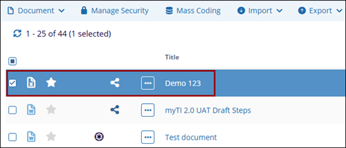 Users with necessary access permissions can drag and drop documents from one folder to another. Dragging and dropping documents across folders will not alter the metadata applied to the document. However, if a document manually copied from one folder to another, users need to re-code the document.