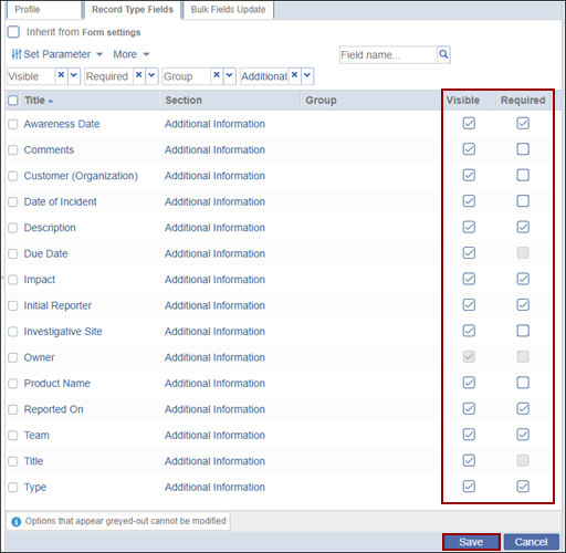 - Check or uncheck the ‘Required’ and