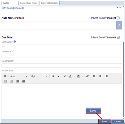 Note: If the checkbox is enabled, the record type will inherit the configurations from its parent record type.