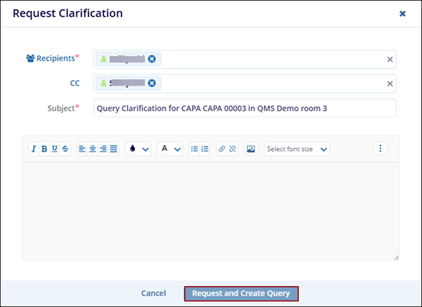 When a CAPA record progresses through the workflow stages, the assigned authorities at each stage can request clarification or create a query for the CAPA record, based on the workflow stage configuration.