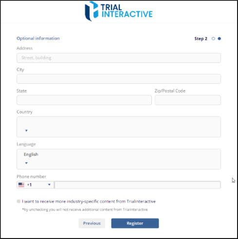 - User will be directed to the Trial Interactive user account registration
