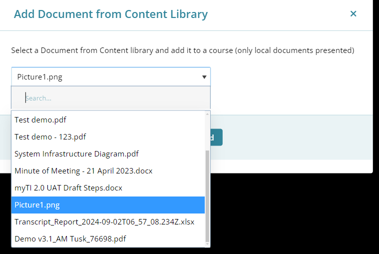 documents/files added to the Training Library appear in the dropdown.