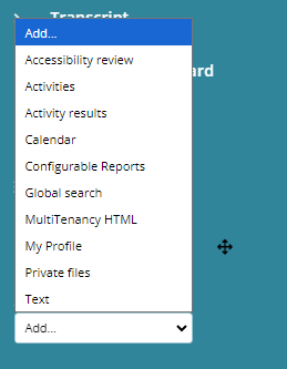 - Click on the Add a block dropdown in the left-hand navigation pane and select