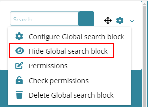 - To hide a block, click on the Actions menu dropdown, and select the Hide