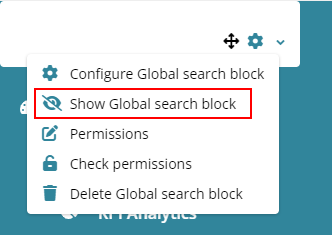 - To unhide the block, click on the Actions menu dropdown and select the Show