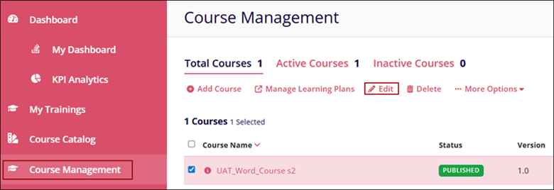 - Select a course and click on the +Edit button icon.