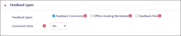 Feedback Types Name Description. Feedback Types - Feedback comments: If enabled, the marker can leave feedback comments for each submission.