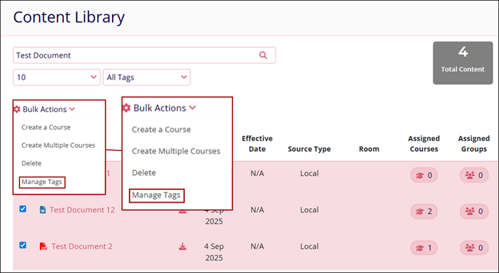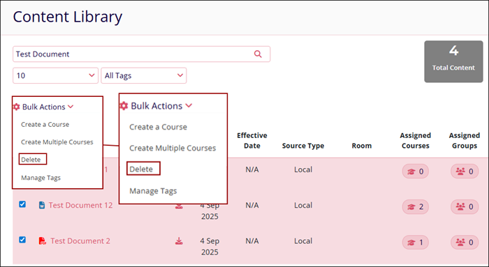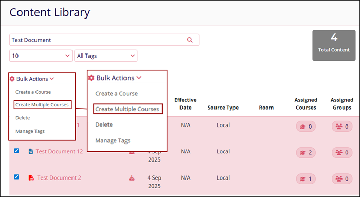 Using the following Bulk Actions feature in GlobalLearn, users can perform a single action on multiple content files.