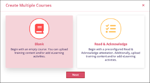 - On the Create Multiple Courses screen, select either Blank or Read & Acknowledge and