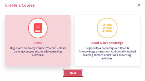 - Select the Blank or Read & Acknowledge course options and click on the