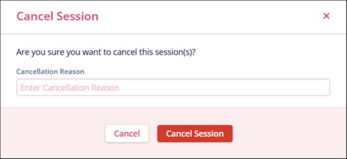 - To cancel a session, click on the Cancel Session option, provide a cancellation reason,
