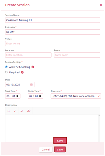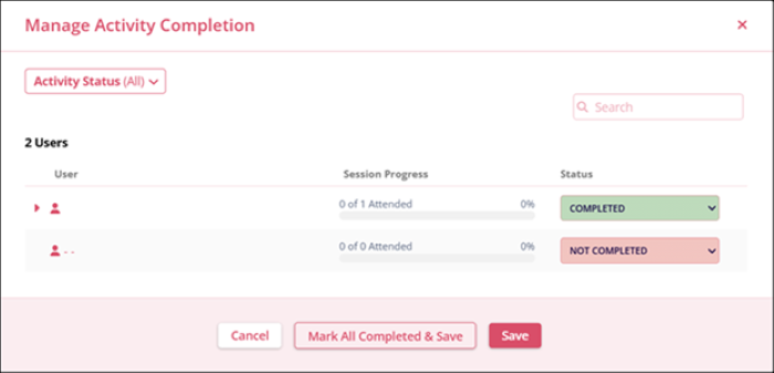 If Mark All Completed & Save is selected, all sessions will be marked as Completed and cannot be edited.