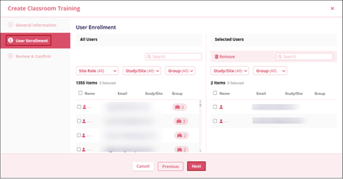 - Refer to the User Enrollment standard steps from the External Training section and click