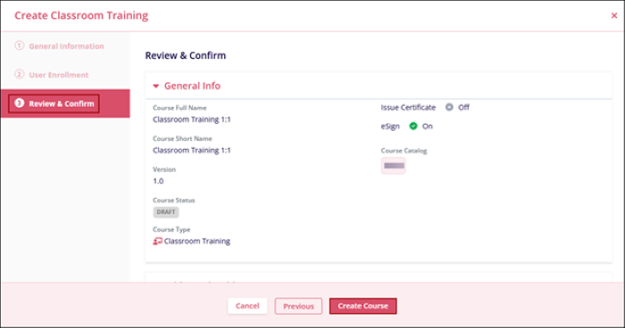 The Classroom Training option grants users the ability to support live, instructor-led courses. Using this type of course, managers can confirm that a course has been completed with evidence and course materials, allowing the Learner to eSign the course. The class is held live in a classroom, but the attendance is stored online along with certificates and signatures if the user requires it. Classroom trainings are synchronous trainings that are given to any learner outside of the learning management system.