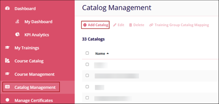 - From the left-hand navigation pane, click on the Catalog Management link.