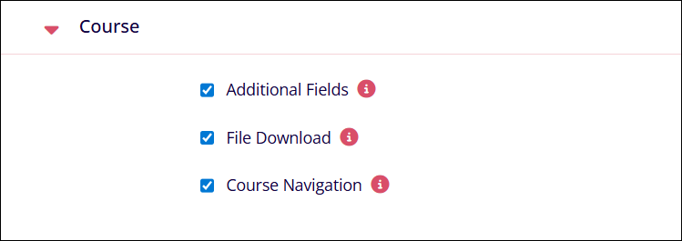 Select the following checkboxes to enable the course-related settings and vice versa.