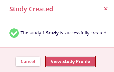 - Click the View Study Profile button on the study creation confirmation popup.