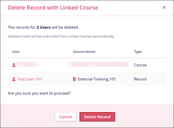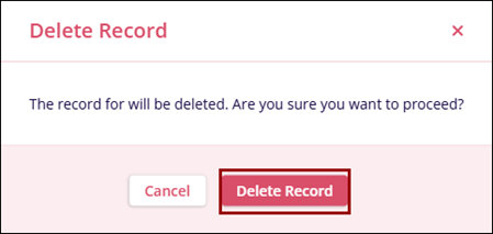 - On the Delete Record confirmation popup, click on the Delete Record button to
