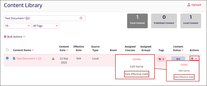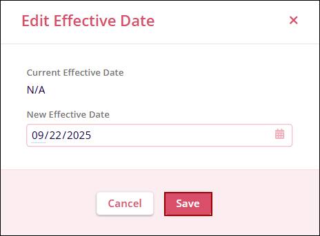 - Click on the Actions column dropdown and select the Edit Effective Date
