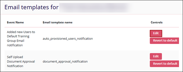 - On the Email Templates screen, click on the Edit button for the template to edit.